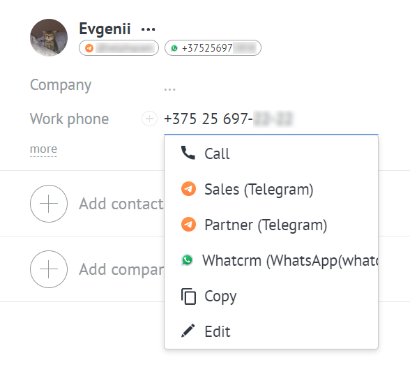 The «Write to messengers» feature in Kommo gives you the ability to send messages and establish communication with your customers through our WhatsApp integration.