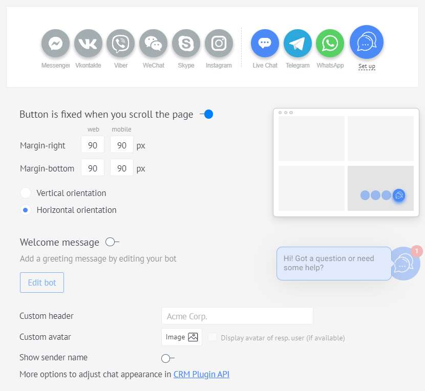 A CRM plugin is the easiest way for your website visitors to contact you via chatbots.
