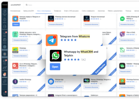 In the search box, write Whatcrm or search for our WhatsApp icon from Whatcrm and Telphin