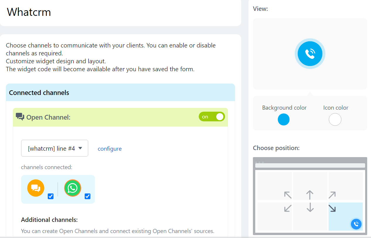 No. Whatcrm capabilities allow you to connect all employees of the company to one channel, or each specialist can have a separate channel to communicate with customers.