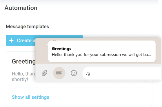Quick reply templates | Start: | Pro: | Enterprise: | ||||||||||||
